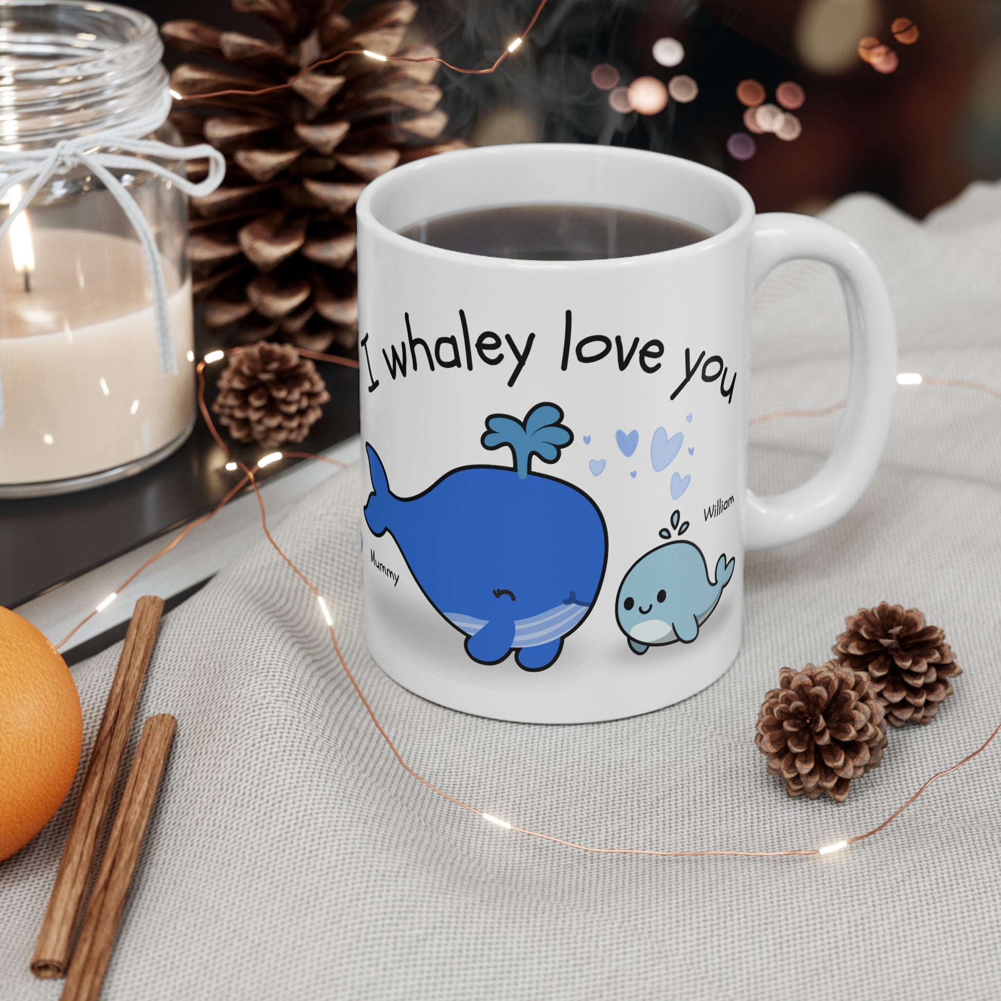 Personalised Cute Whale Family Love Mug, Personalized Gift for Mom, Perfect for Birthdays, Mother's Day, Family Gatherings, Ocean Lovers